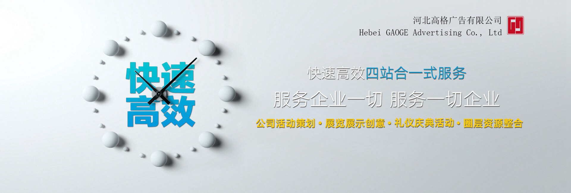 河北高格廣告有限公司是一家專業(yè)致力于大型文化活動(dòng)組織策劃、展覽展示工程策劃、展臺(tái)設(shè)計(jì)制作、特裝展臺(tái)搭建、會(huì)議會(huì)場(chǎng)布置、巡回展覽、路演、公關(guān)推廣執(zhí)行、會(huì)議慶典禮儀、路演設(shè)備租賃、倉(cāng)儲(chǔ)等一站式的專業(yè)服務(wù)公司。本公司憑借創(chuàng)新領(lǐng)先的服務(wù)理念,大型的廠房空間,現(xiàn)代化的機(jī)械設(shè)備,高素質(zhì)專業(yè)的服務(wù)團(tuán)隊(duì),及在該行業(yè)多年的實(shí)戰(zhàn)經(jīng)驗(yàn),為地產(chǎn)營(yíng)銷提供了優(yōu)秀的活動(dòng)方案、為不同行業(yè)的數(shù)千家企業(yè)提供了專業(yè)個(gè)性化的空間展示方案,幫助客戶實(shí)現(xiàn)了自我品牌的提升和企業(yè)利潤(rùn)的雙贏。...